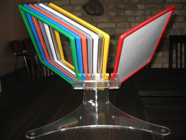 Katalogą sudaro akrilinis stovas ir 8 rėmeliai. Gaminys skirtas katalogizuotam informacijos pateikimui.