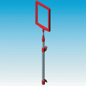 Laikiklis tvirtinamas ant tinklo ar vielinių krepšių. Kojelė aliumininė, aukštis reguliuojmas. Galimi išmatavimai 300-510, 580-1010, 830-1510  mm. Rėmelis nekomplektuojamas.
